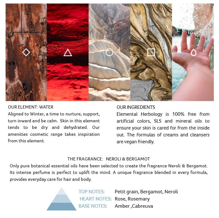 Elemental Herbology products are 100% free from artificial colors, SLS, paraben preservatives, and mineral oils, ensuring your skin is nurtured from the inside out. Proudly made in Italy and clinically tested.
